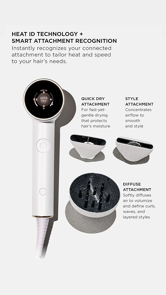 - Features auto-adjustable heat and speed settings and smart attachment recognition